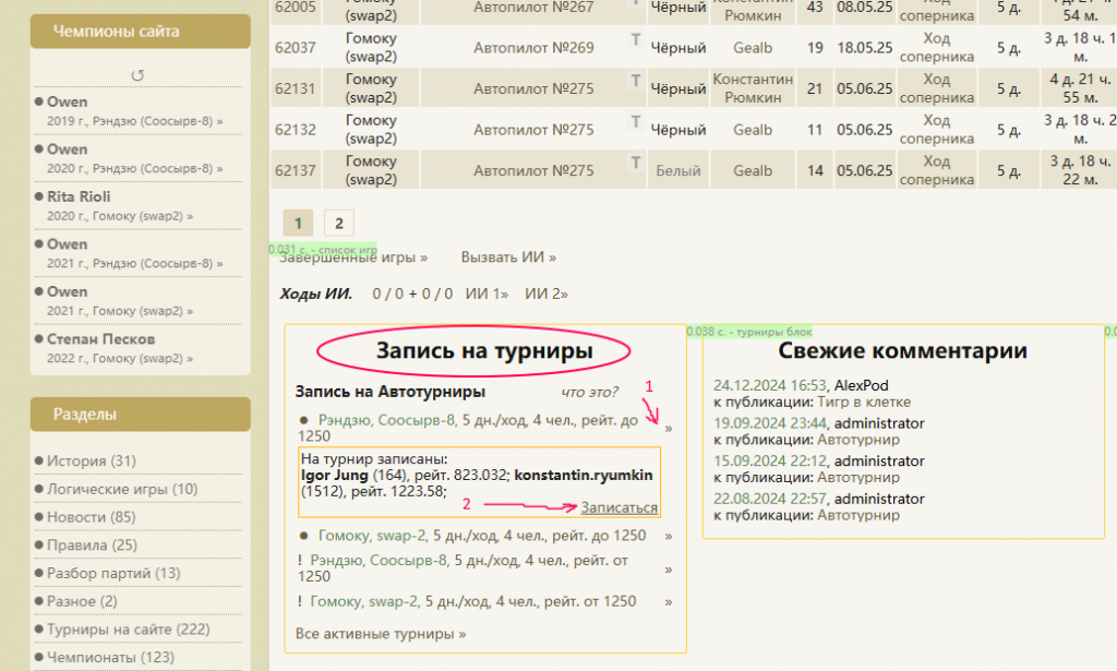 Предлагаю их назвать: Автотурнир “Пилот-1″, Автотунир “Пилот-2″ и т.д., но нечетные номера это гомоку, а четные рэндзю